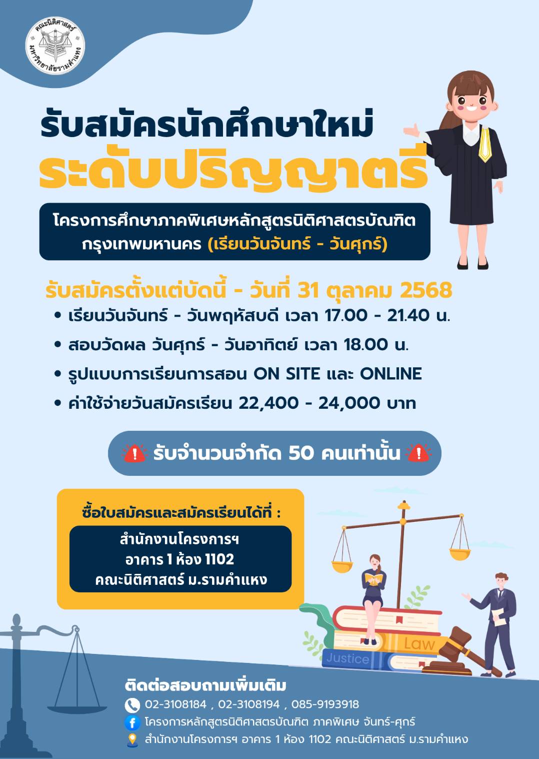 โครงการศึกษาภาคพิเศษหลักสูตรนิติศาสตรบัณฑิต กรุงเทพมหานคร (เรียนวันจันทร์ - วันศุกร์)