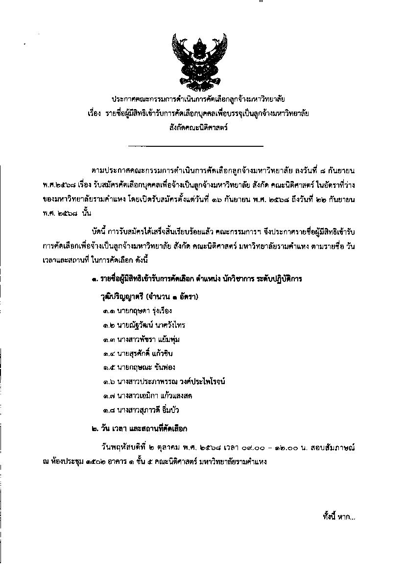 ประกาศรายชื่อผู้สิทธิเข้ารับการคัดเลือกบุคคลเพื่อบรรจุเป็นลูกจ้างมหาวิทยาลัย สังกัดคณะนิติศาสตร์Written by ผู้ดูแลระบบ | | | Hits: 237 Tweet ประกาศรายชื่อผู้สิทธิเข้ารับการคัดเลือกบุคคลเพื่อบรรจุเป็นลูกจ้างมหาวิทยาลัย สังกัดคณะนิติศาสตร์ (งบโครงการฯ)